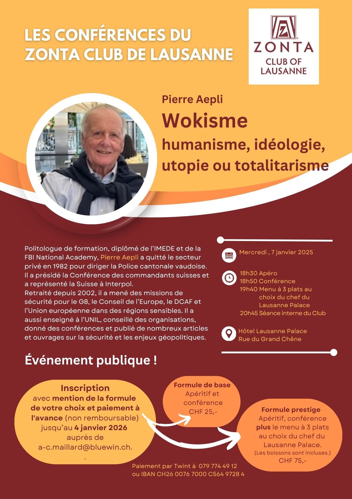 Le Zonta Club organise une conférence publique "« Wokisme - humanisme, idéologie, utopie ou totalitarisme »